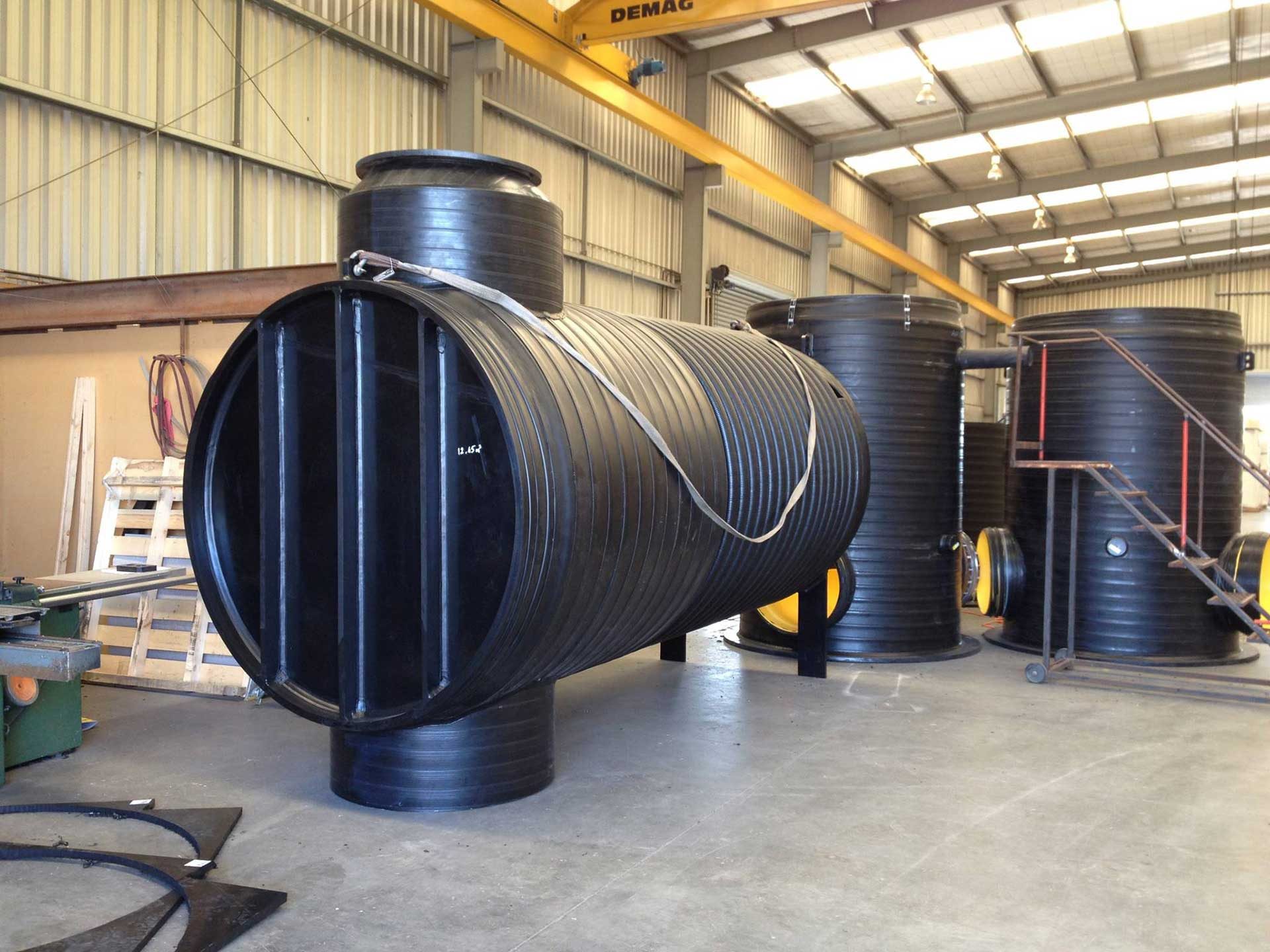 The PE100 spiral wound pipe technology used by PKS Civil makes it practical to manufacture pipes to a specified ring stiffness/SN rating at a fraction of the weight. The high strength to weight ratio is due to the use of PP (polypropylene) core tube, which give the pipes their ribbed nature, wrapped in PE100 material. This means PKS Civil pipe systems can be installed as alternative solutions in gravity stormwater and wastewater settings over traditional pipe materials like steel, concrete and GRP.
